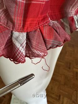 Pre owned, shows light general wear. Has a snag on the right sleeve & left bottom ruffle. The underarm sleeves seams are somewhat stretched, but the stitch is not broken. Shown on size small mannequin. It is roomy in the bodice but not the shoulders.