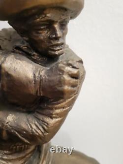 Item is missing the gun that would normally be in his hand. There is 1 chip located on the inside of his chaps. Hardly noticeable but I must mention it. Chip is located on picture #6.