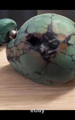 Antique Sterling Silver 925 and Large Matrixed Turquoise Bead Necklace Pictoral Hallmark. Condition: Good - shows some sign of wear. Note: Clasp & silver beads are. One bead is chipped in the matrix.