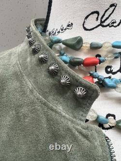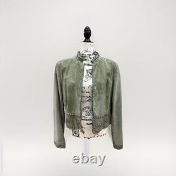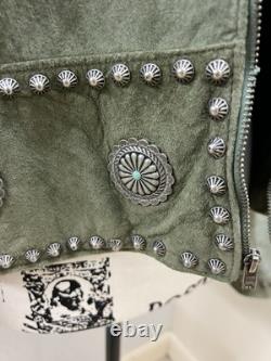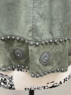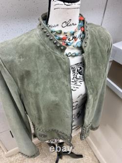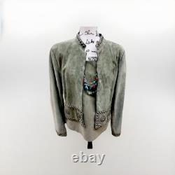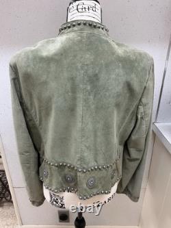 This vintage western leather jacket set from Double D Ranch is a must-have for any fashion-savvy woman. The jacket and under shirt set is perfect for casual occasions and features a beautiful green color that is sure to turn heads. Made from high-quality leather, this original 1980s set is a true gem that will stand the test of time. The jacket and under shirt set is available in a regular size type and is perfect for women who love vintage clothing. This set is an excellent addition to any wardrobe and can be dressed up or down depending on the occasion.