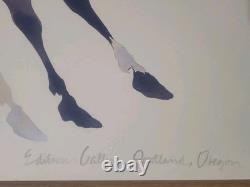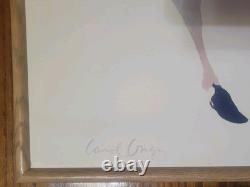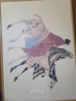 The product is a vintage large framed watercolor print by artist Carol Grigg titled The Fiesta Days. This landscape-oriented artwork depicts a scene featuring Native American art with elements of women, hunting, horses, cowboys, and natural history. The licensed reprint from the 1980s showcases a mix of themes including nature, art, inspirational, and social history, with a Western and Americana style. The print measures 36 inches in length and 26 inches in width, making it a unique addition to any art collection.
