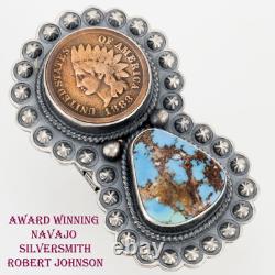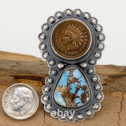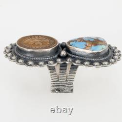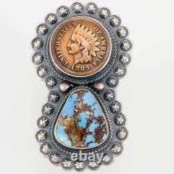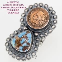 GOLDEN HILLS Turquoise Ring W Antique 1883 Coin Robert Johnson Navajo 8 Sterling