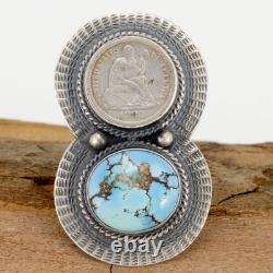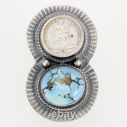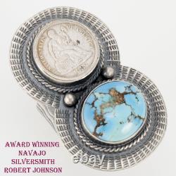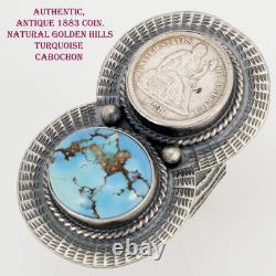 GOLDEN HILLS Turquoise Ring W Antique 1883 Coin Robert Johnson Navajo 9 Sterling