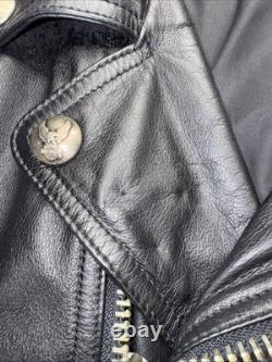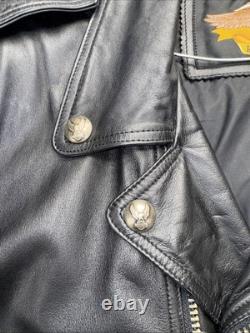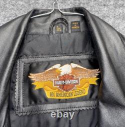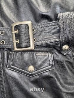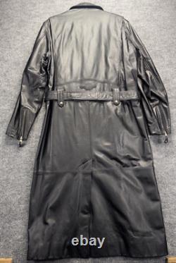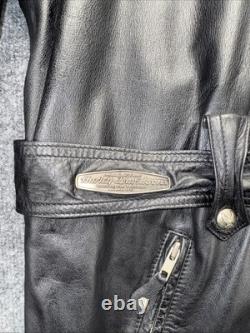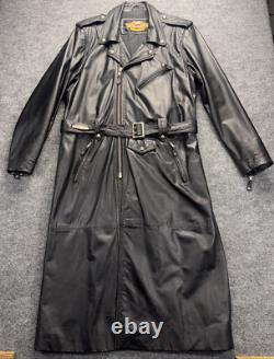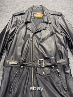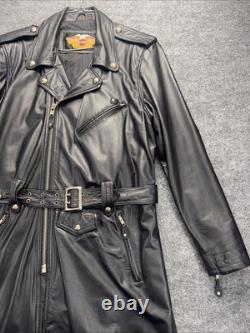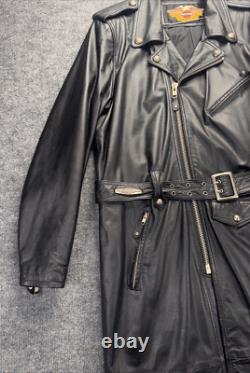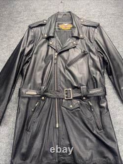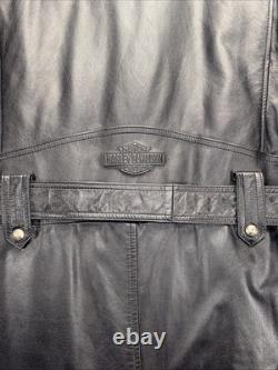 Embrace the timeless appeal of a Harley-Davidson Men's Leather Trench Coat, a garment that exudes classic biker style combined with functional design. The coat features a durable leather outer shell with a comfortable nylon lining, ensuring warmth and breathability. Its long, wind-resistant silhouette is perfect for transitional weather, making it an ideal choice for fall, spring, and winter. This coat comes in a versatile black hue, accented with the iconic Harley-Davidson logo and leather trim details. A spread collar and adjustable button buckle closure add to the coat's vintage charm, while practical elements such as zipped pockets and a windproof feature make it a practical addition to your outerwear.