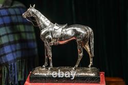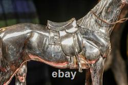 Presenting a striking, finely crafted equestrian statue that captures the grace and power of a saddled horse. The detailed saddle, bridle, and muscular contours of the horse showcase an exquisite level of artistry.