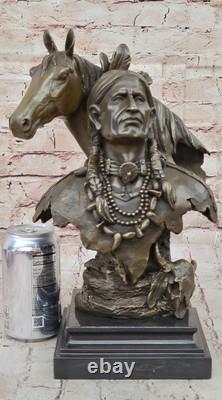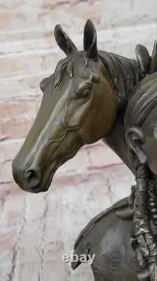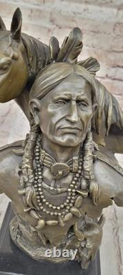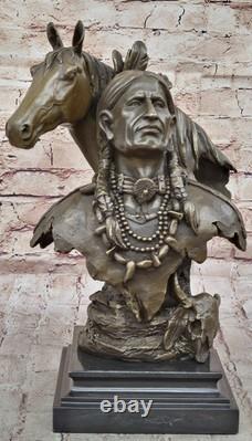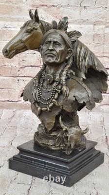 Hot Cast Bronze Sculpture Indian Chief and his Horse Bronze Sculpture Statue LRG.
