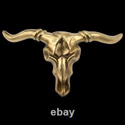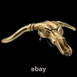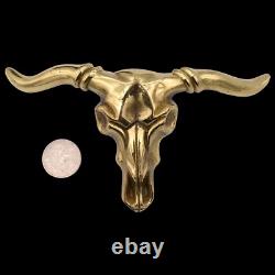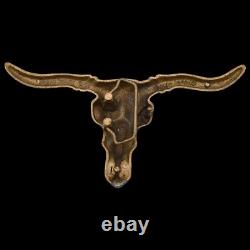 LARGE Solid Brass Longhorn Bull Skull 1980s Vintage Belt Buckle