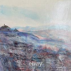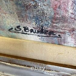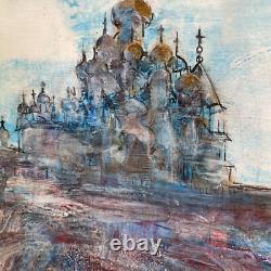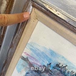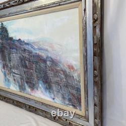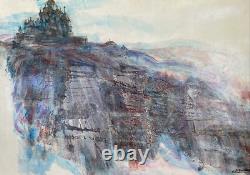 Large Vintage Palace on Mountain Landscape Painting 38x28 Castle Village signed