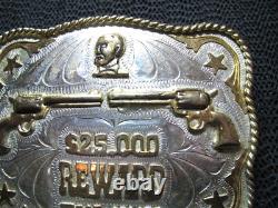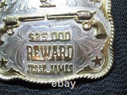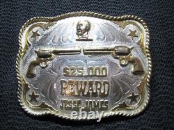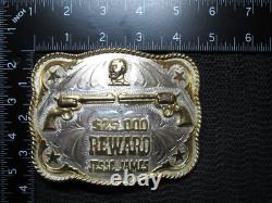 Large Western Jesse James $25,000 Reward Revolvers Belt Buckle! Vintage! Rare