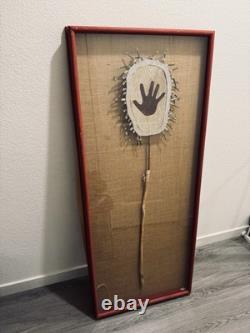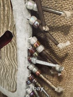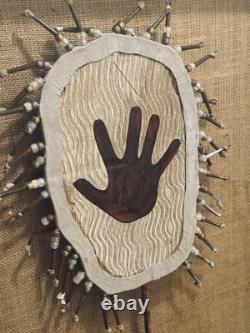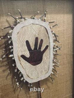 This is a perfect piece for collectors of antique and rare artwork who appreciate the beauty and history of Native American culture. Please read description as this is a Native American hand made shield from the ceremonials, it's framed with glass, the frame does have some scuffs, but very unique piece and rare to find!