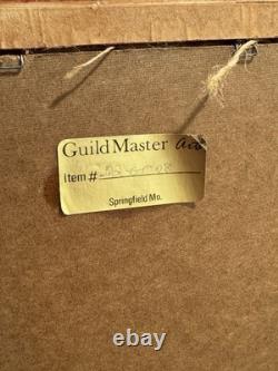 This stunning piece of art depicts a Native American figure in a ceremonial stance, with a beautiful red hand-painted design on the shield. The piece is framed and measures 48 inches in height and 24 inches in length, making it a large and striking addition to any collection. The piece is a perfect representation of Western and Native American art, with a portrait style that captures the spirit and essence of the subject. The production technique is hand-made, making each piece unique and one-of-a-kind. The artwork is from the United States and is a single-piece sale.