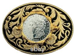 This Is For One Large Gold Color Southwest Western 1921 Morgan Silver Dollar Oval Belt Buckle. This buckle measures approximately 4 Inches by 2 3/4 Inches.