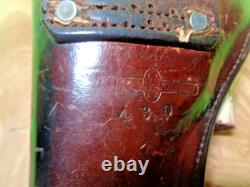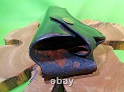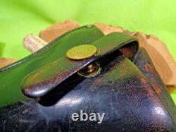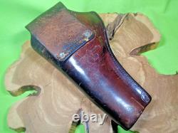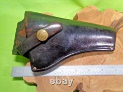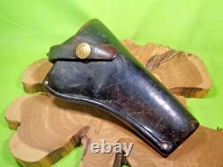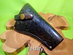 This rare antique Heiser holster from the early 1900s is a valuable collector's item for fans of Colt pistols. Made of brown leather with a right-handed design, this cowboy/western holster is perfect for shooting enthusiasts looking to add a piece of history to their collection. The holster, designed for a pistol, features a belt attachment for easy carry at the 3 o'Clock position. With its unique brand and American craftsmanship, this holster is a must-have for any gun enthusiast looking for a piece with authentic charm and character. 5 ½ Colt SAA, (large frame revolver).
