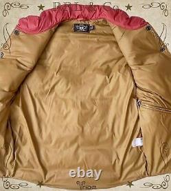 COLOR: Hunting Green FABRIC: Shell/Lining: 100% Nylon Yokes: Cow Leather Fill: Polyester SIZE: Large MEASURMENTS: Chest: 49 in Length: 27 in 100% authenticated. To Measure the chest, find a similar item of clothing that fits well and measure it from underarm to underarm. For the length, measure the back from collar bottom to hem bottom.