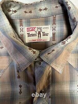 Vintage 1960s Levi's Big E Western Wear Shirt Dan River Fabric Cards Gambling L. In excellent condition for its age. As noted in pics one small repair that's hardly noticeable. Let me know with any questions, thanks!