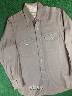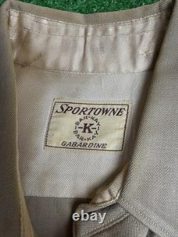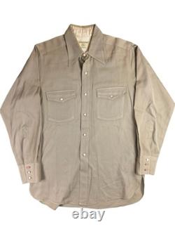 Vintage 40s Western Gabardine Large Beige Pearl Button Gussets Shirt USA. Pit to pit: 21.25 inches.