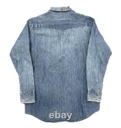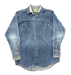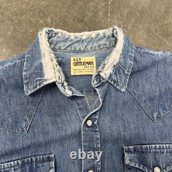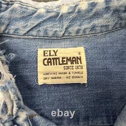 Vintage 60s 70s Distressed ELY Cattleman Denim Pearl Snap Western Cowboy Shirt