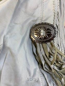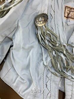 Vintage 60s 70s Womens Lace Fringe Indian Leather Aztec Jacket Navajo Western L