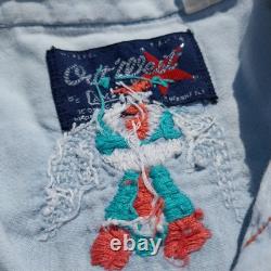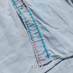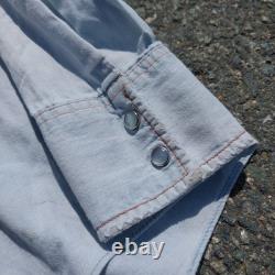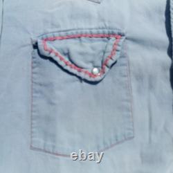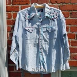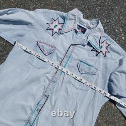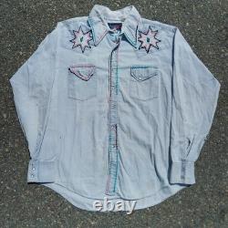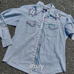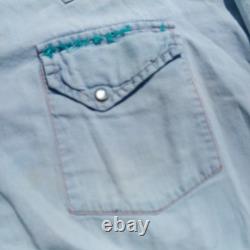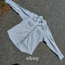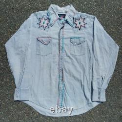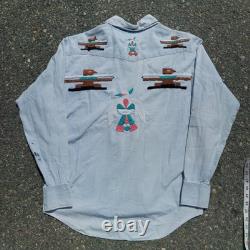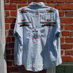 Vintage 70s OUTWEST Western Wear Chambray Pearl Snap Hand Embroidered Aztec Art