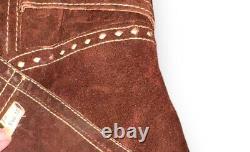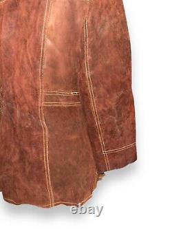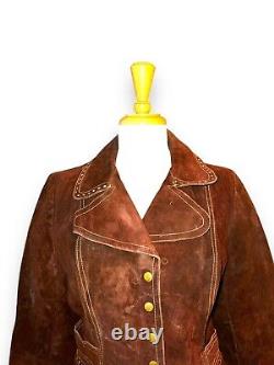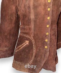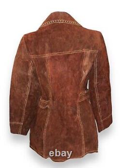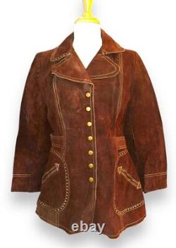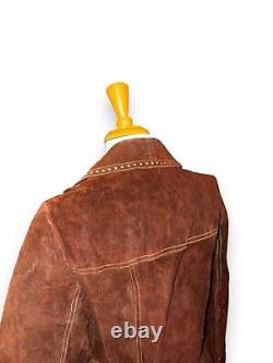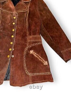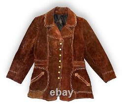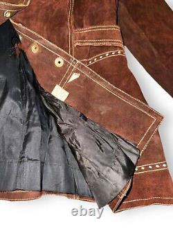 Vintage 70s Split Suede Cowhide Button Up Jacket Brown Boho Hippie Western Sz L