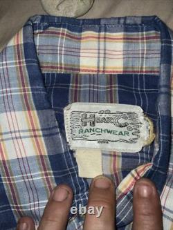 Rare vintage H Bar C shirt here! I'm not exactly sure the size but I believe it is a large.