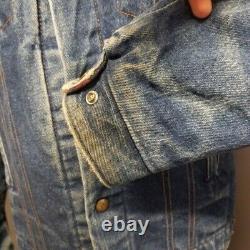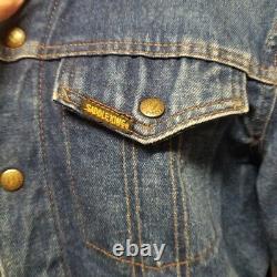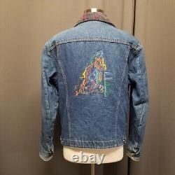 Great used vintage condition, see pictures for signs of wear and distressing, pilling on lining, etc No size tag but fits like a Women's Large or oversized Sm-Md, see measurements for sizing and fit Amazing blanket lined denim Jean Trucker Jacket Beautiful Barrel Racing Equestrian Horse on back Approx measurements laying flat Pit to pit 22" Shoulder 19.5" Length 24.5" Length 23.5" Western Cowboy Rodeo Texas Country Marlboro Man Rave Festivals Boho Burning Man Coachella.