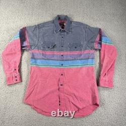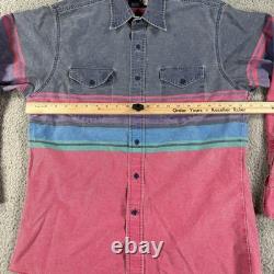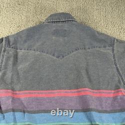 Approximate era: 1990s, classic vintage Wrangler styling. Made in USA (see tags for verification).Color: Multicolor stripes with red, blue, purple, turquoise, and green. Perfect for Western, rodeo, or vintage 90s style enthusiasts.
