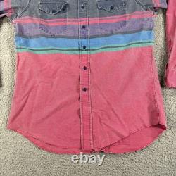 Vintage Wrangler Shirt Mens XL Long Tails Multicolor Aztec Western Pearl Snap 90s. Condition: Good, with light wear and minor fading throughout. No holes, stains, or major flaws noted. Some wear consistent with age, as shown in photos.