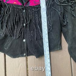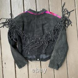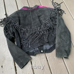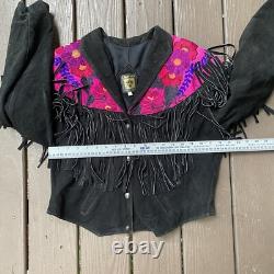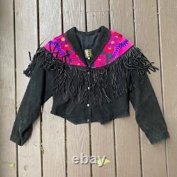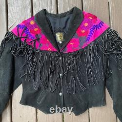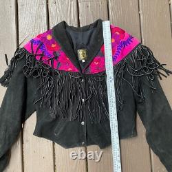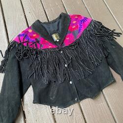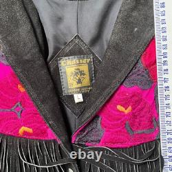 Attention to detail is evident in the long sleeves, snap closures, and the fringed accents that give this jacket a distinctive boho vibe. Whether you're out for a casual ride or adding a vintage touch to your everyday look, this jacket is versatile for all seasons and occasions. Carefully made in Mexico, it requires dry cleaning to maintain its sophisticated appearance.