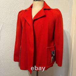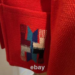 Vtg Chimayo Womens L XL Open Front Blanket Jacket Red Western