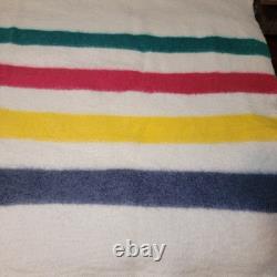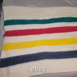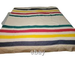 Vintage Early's Witney Blanket 4 Point Pure New Wool Made In England Cream & Multicolor Stripes Western.
