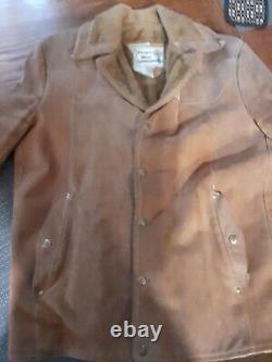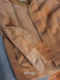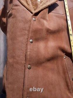 Vtg Pioneer Wear Suede Jacket Size 40 Leather Brown Sherpa Lined Western Cowboy