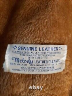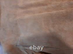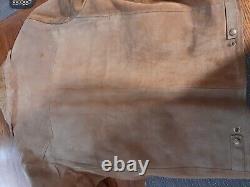 This vintage 60s 70s Pioneer Wear Western sherpa rancher distressed leather jacket is a must-have for any fashion-forward individual. The jacket, made of high-quality leather, features a beige color and a Western-inspired look that is perfect for outdoor occasions. Light wear from age and use, otherwise in very good vintage condition, and a nice heavy duty leather coat. Armpit to armpit of 22 inches and a sleeve length of 23 inches, this jacket is designed to fit comfortably. The jacket also has a unique distressed look that adds to its vintage charm.