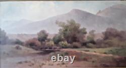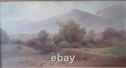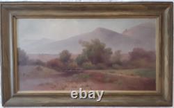 The painting depicts a beautiful scene with its use of muted colors and impressionistic style. I believe it is from west Texas. Nicely framed with frame measuring 22 1/2 inches by 36 inches. These pieces were frequently unsigned and painted for the commercial market by very talented artists seeking to generate income.